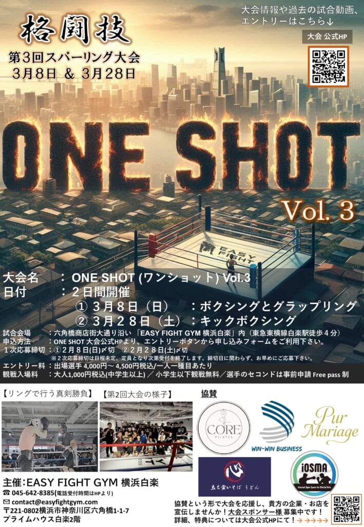 ONE SHOT Vol.3 スパーリング大会を応援しています Posted on 2026年1月20日2026年2月4日 by Win-Win Business 弊社は、ONE SHOT Vol.3 スパーリング大会の開催趣旨に賛同し、スポンサーとして本大会を応援しています。 挑戦する選手一人ひとりの努力と成長を支える真剣勝負の舞台に敬意を表し、今後も格闘技文化の発展に貢献してまいります。 ▶ ONE SHOT大会公式サイトhttps://oneshot-martialarts-match.hp.peraichi.com